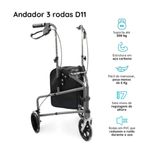 O Andador D11 é o único andador ortopédico com 3 rodas dobrável e desmontável do mundo. Compacto, leve e resistente, o andador D11 foi projetado com foco na segurança e praticidade, para atender às necessidades de idosos e adultos com dificuldades de locomoção.