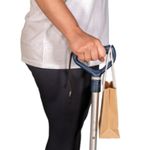 A Bengala Fixa com Apoio foi desenvolvida para auxiliar pessoas com mobilidade reduzida, proporcionando apoio e estabilidade para prevenir quedas durante a caminhada. O recurso é resistente, leve e possui apoio de mão com cantos arredondados e design ergonômico, que contribui para melhor distribuição da pressão palmar, além de apoio extra, que auxilia o usuário a erguer-se com as duas mãos. O dispositivo conta com 10 níveis de ajuste de altura, alça para punho e suporte para apoiar pequenos objetos. A bengala contém ponteira flexível com ranhuras que reduzem o risco de deslize em pisos com acúmulo de líquido e sinalizador de desgaste, o que oferece uma passada mais natural e segura ao caminhar.