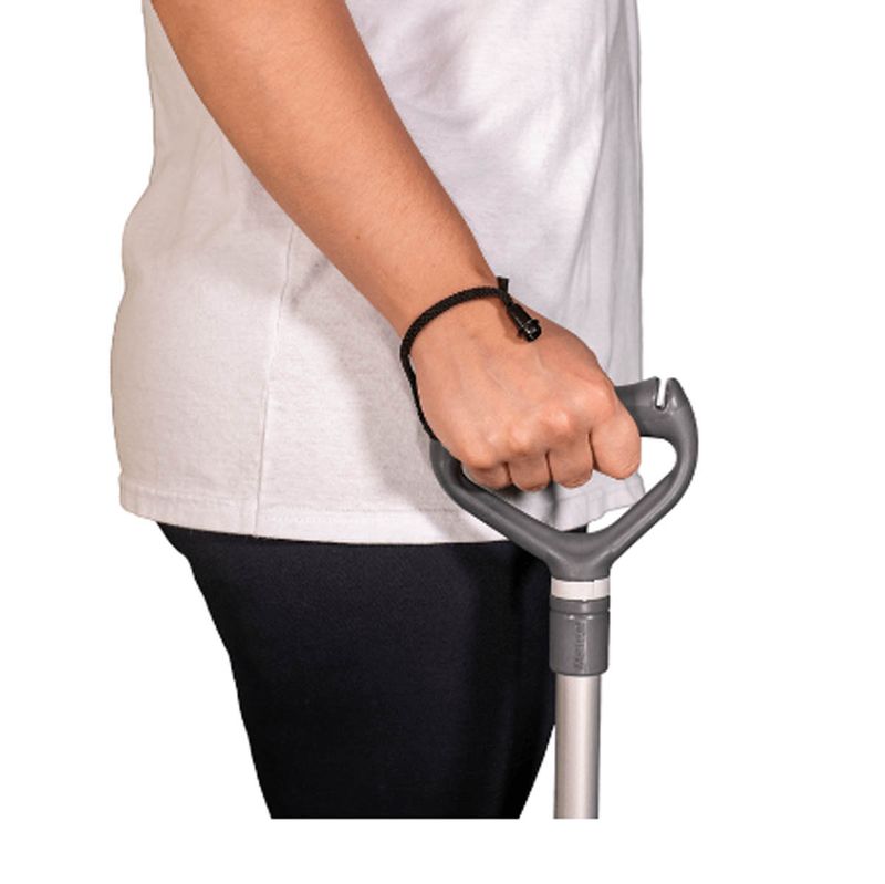 A bengala contém ponteira articulada que oferece uma passada mais natural e segura ao caminhar. A peça contém ranhuras que reduzem o risco de deslize em pisos com acúmulo de líquido e sinalizador de desgaste, que orienta o momento de substituição da ponteira.