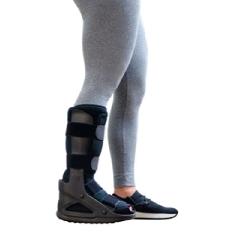 Bilateral e cumpre sua função imobilizadora sem comprometer a autonomia da pessoa lesionada, proporcionando mobilidade e conforto, através de tecnologias em cinco principais componentes: estrutura, solado, palmilha, protetor de calcanhar e revestimento. A estrutura possui hastes anatômicas que encaixam na perna e panturrilha. O componente é produzido em material resistente, sem a utilização de metais, o que possibilita o uso da bota para a realização de exames de raio-x. O solado apresenta uma curvatura com ângulo especialmente desenvolvido para estimular um movimento mais natural do joelho e quadril durante a caminhada. A palmilha proporciona absorção de impacto e distribuição adequada da pressão plantar (forças que se distribuem na planta do pé) para minimizar a sobrecarga nas estruturas do pé, tornozelo e perna. O protetor de calcanhar é uma peça anatômica com a função de aliviar a pressão da região posterior do pé e perna, bem como aumentar a imobilização. O revestimento é transpirável e contém nanopartículas de íons de prata, que neutralizam a proliferação de bactérias no próprio tecido, reduzindo o mau cheiro ocasionado pelo uso prolongado.