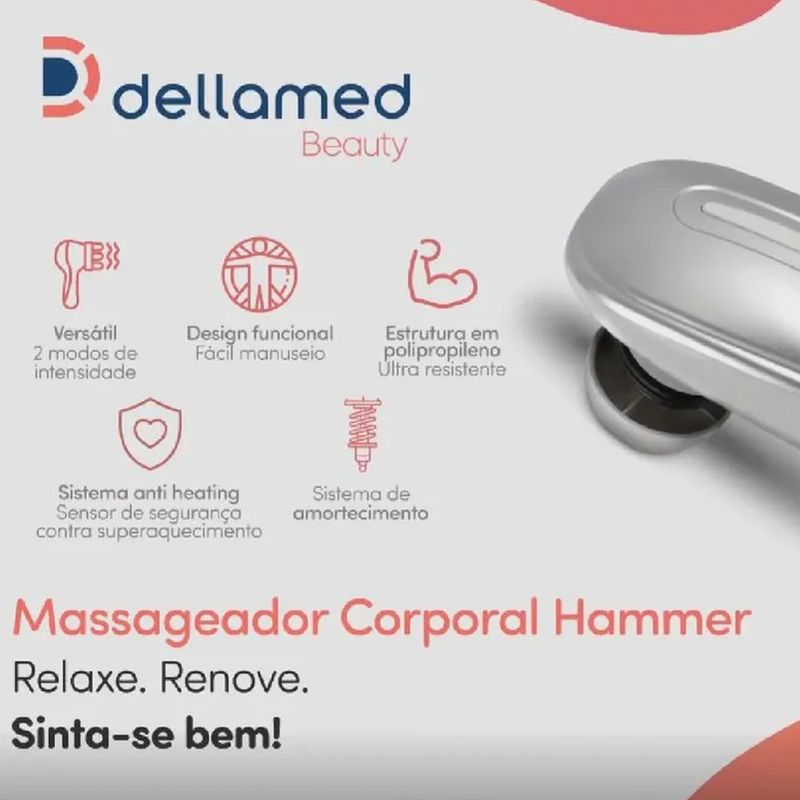 O Massageador Corporal Hammer Dellamed é um massageador elétrico profissional que pode ser usado em todas as áreas do corpo, graças ao seu design alongado. Com dois modos de intensidade, é possível personalizar a massagem de acordo com as preferências individuais. Além disso, este aparelho de massagem também auxilia no combate às celulites, oferecendo uma solução abrangente para o cuidado corporal.